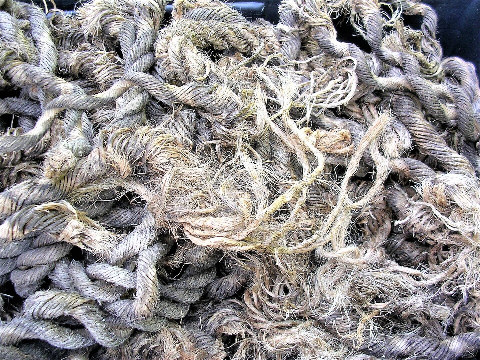 - From old recycled, cleaned, marine jute rope