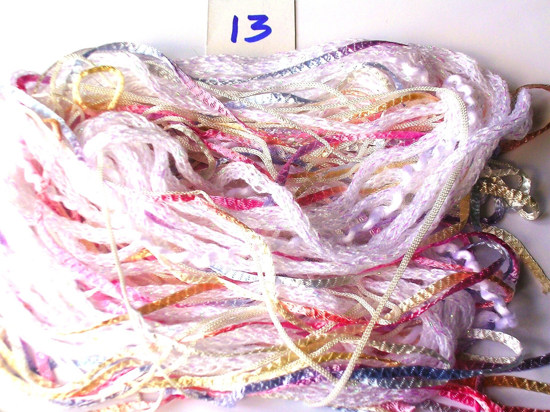 - Ribbon/tape in pastel shades of pink, blue, yellow, cream, apricot, lilac