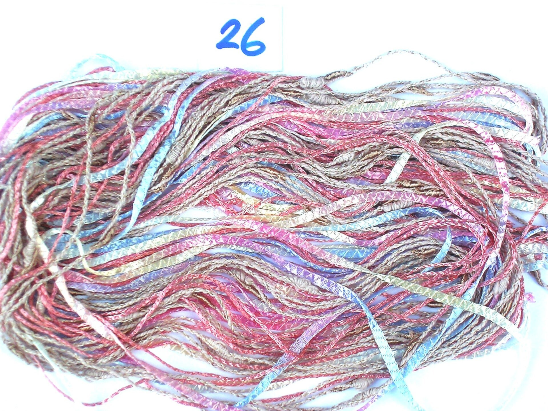 - Space-dyed ribbon/tape in pastel shades of pink, blue, yellow, cream, apricot, lilac