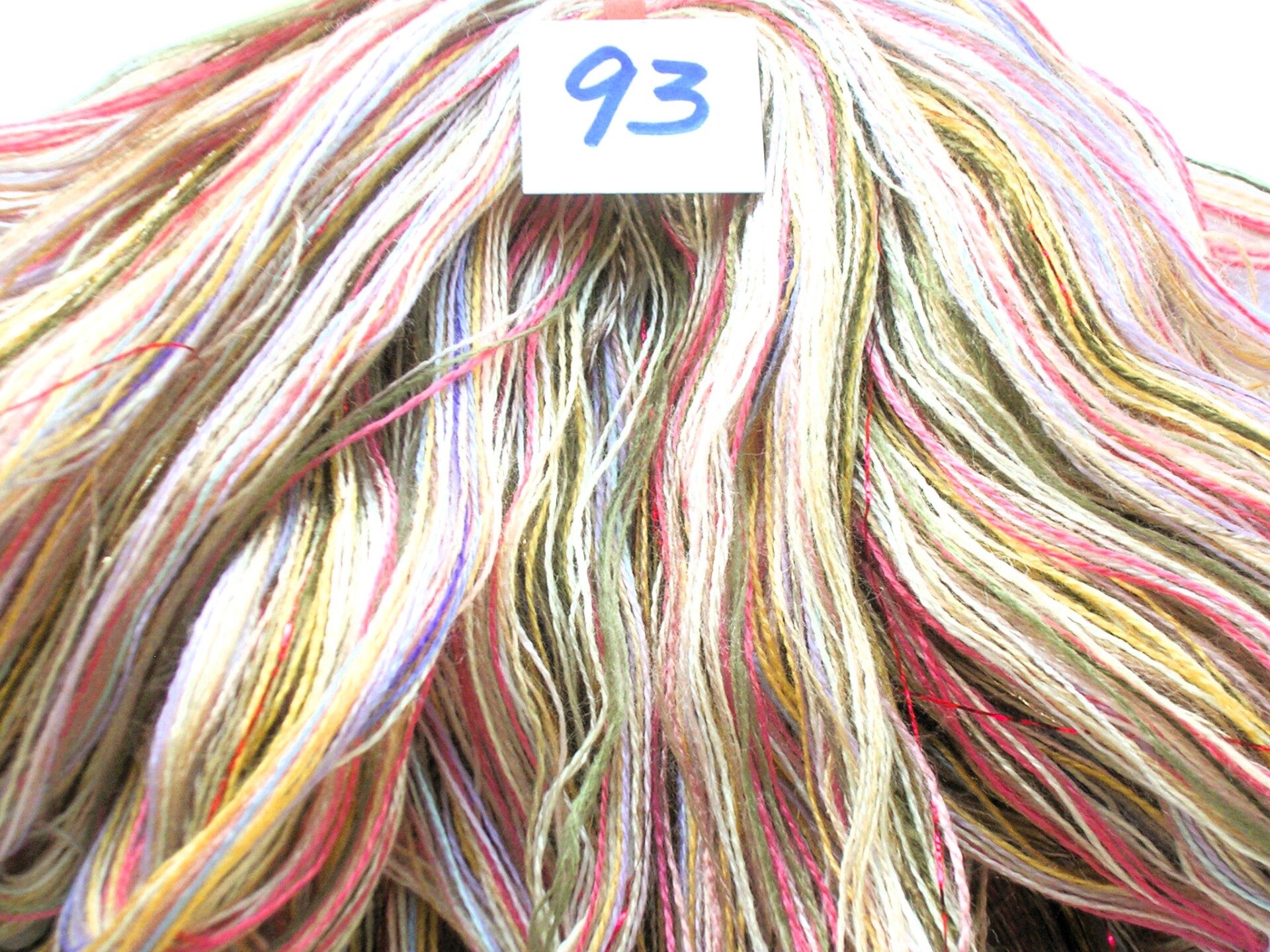 - Cotton, acrylic, mixed fibres some with a 'silky sheen'.