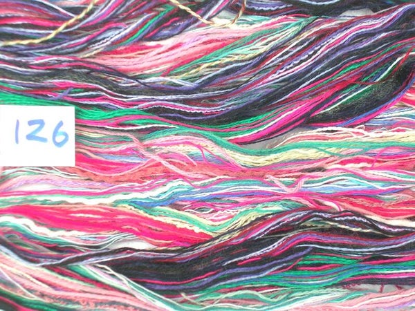 - Fine 1-3ply threads, mainly smooth, some with sheen, limited lengths crinkled, twisted, textured
