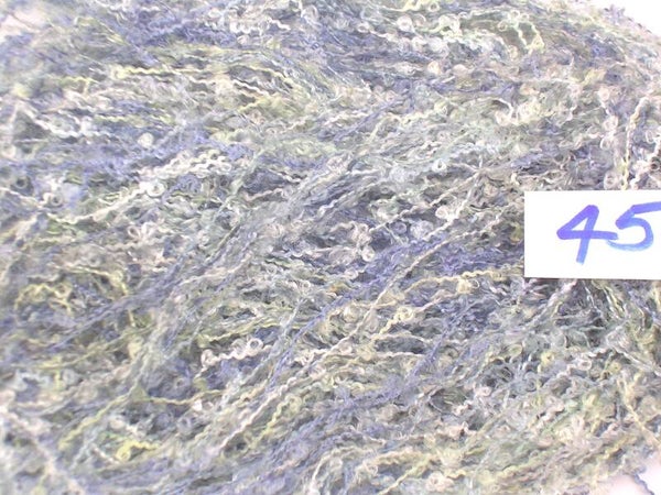 - Highly textured, fairly fine yarns, fancy, novelty threads