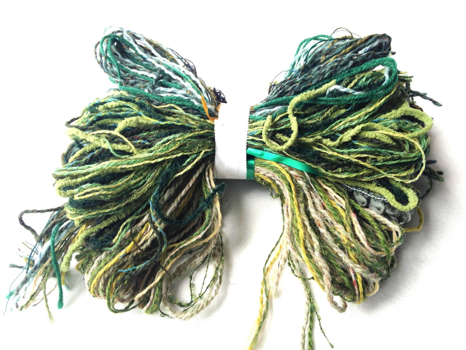 - Packaged in 5 tied bundles/skeins of varying weights