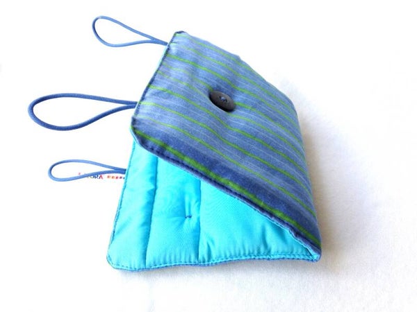 - Light sky BLUE (wide stripe) and bright 'spring leaf' GREEN (narrow stripe) horizontal striped cotton fabric outer.