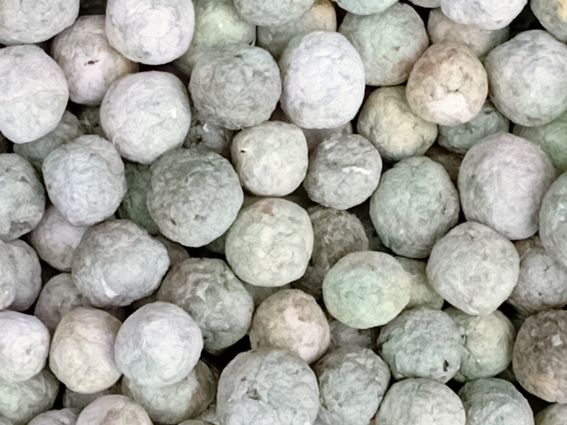 - I make the balls from macerated paper pulp (using my extra kitchen blender purchased specifically for craft use) with added PVA and salt. Nuggets are rolled by hand from clumps of soft, wet pulp into a vaguely rounded shape. They are left to dry naturally in the air, taking up to 2 weeks to fully dry out and harden to a solid nugget.