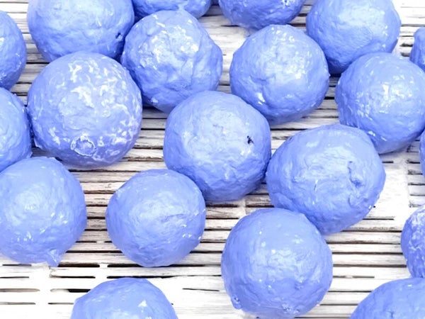 - I make the balls from macerated paper pulp (using my extra kitchen blender purchased specifically for craft use) with added PVA and salt.
