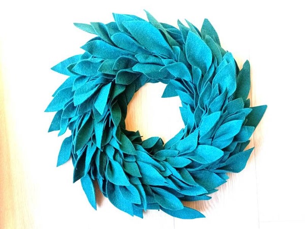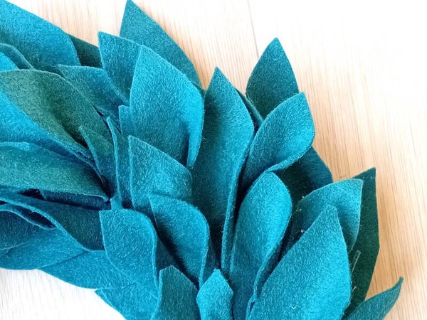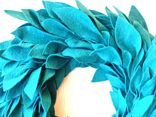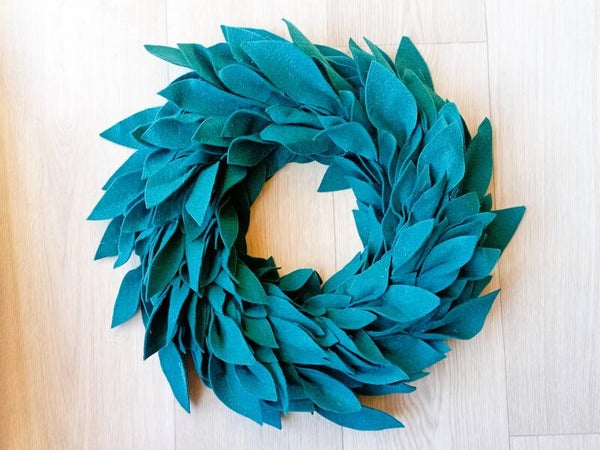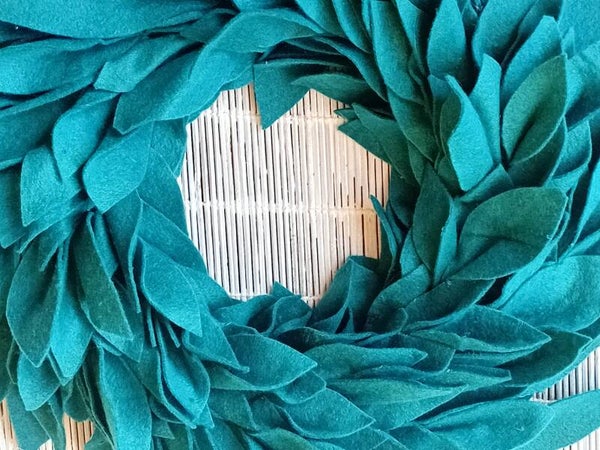- Minimalist, simple, round wreath made from felt leaf shapes.