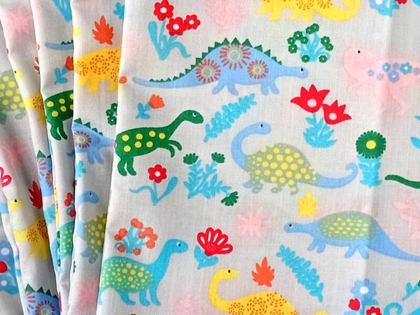 - Multicoloured bright novelty DINOSAURS on pale GREY background.