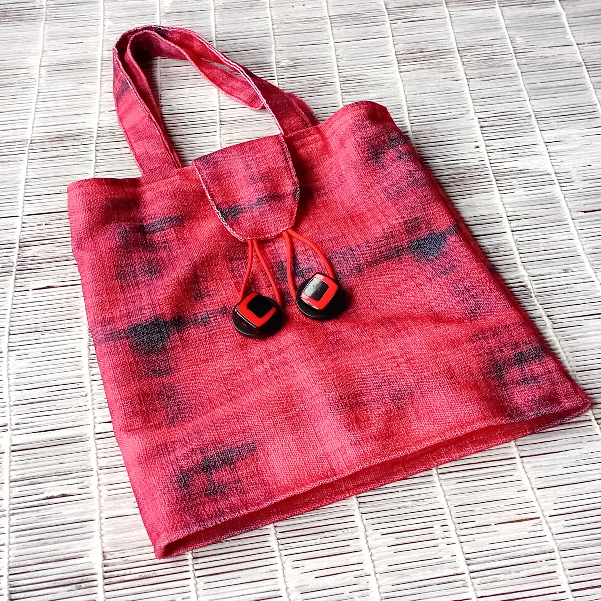 Medium decorative Tote style Bag RG2 in Coral Red/Light RED with charcoal grey 'brushstrokes' abstract pattern fabric.