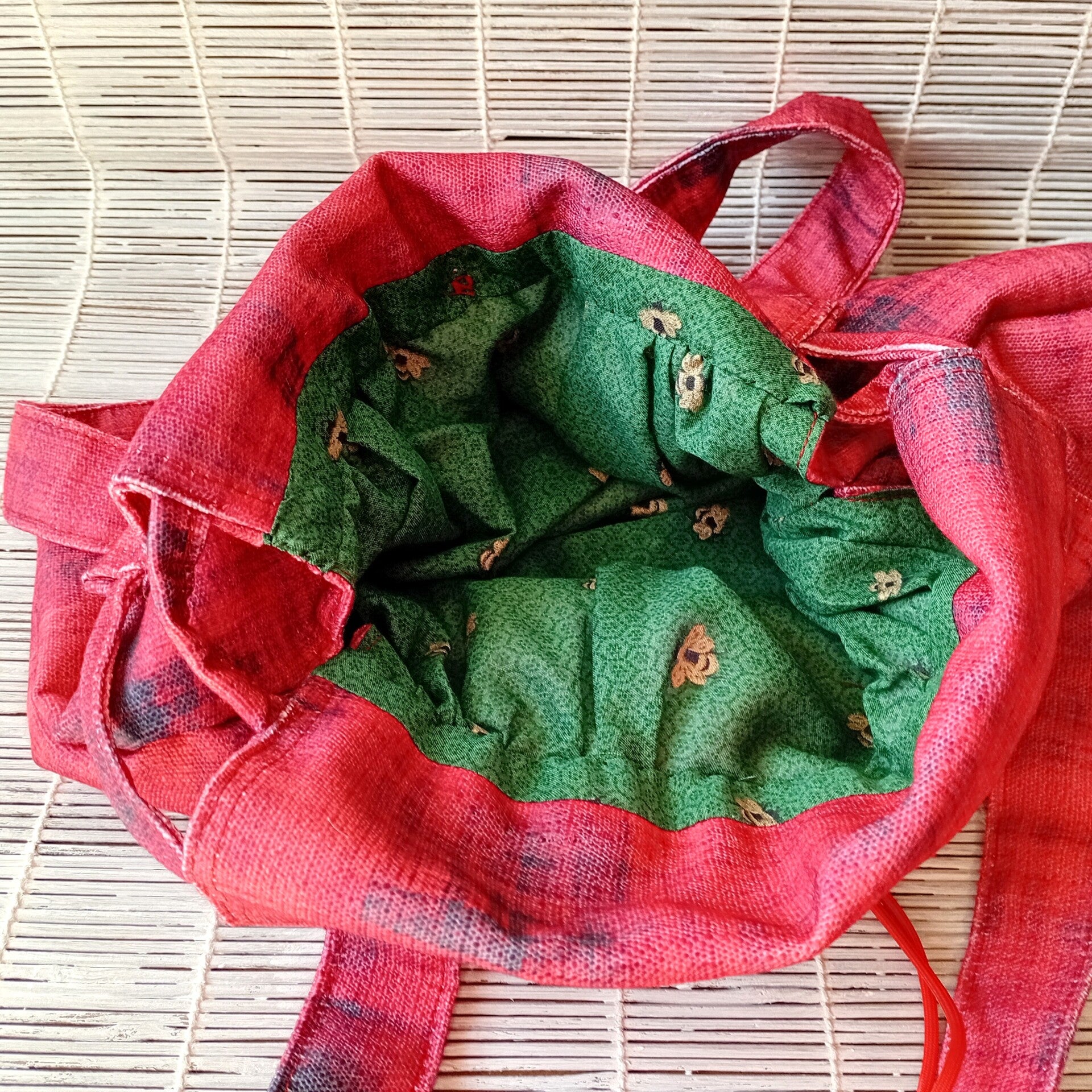 - Glendalough N - a medium size, informal, decorative, rounded, roomy carryall style Bag in Coral Red/Light RED with charcoal grey random 'brushstrokes' abstract pattern fabric.