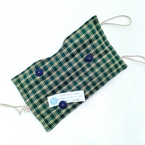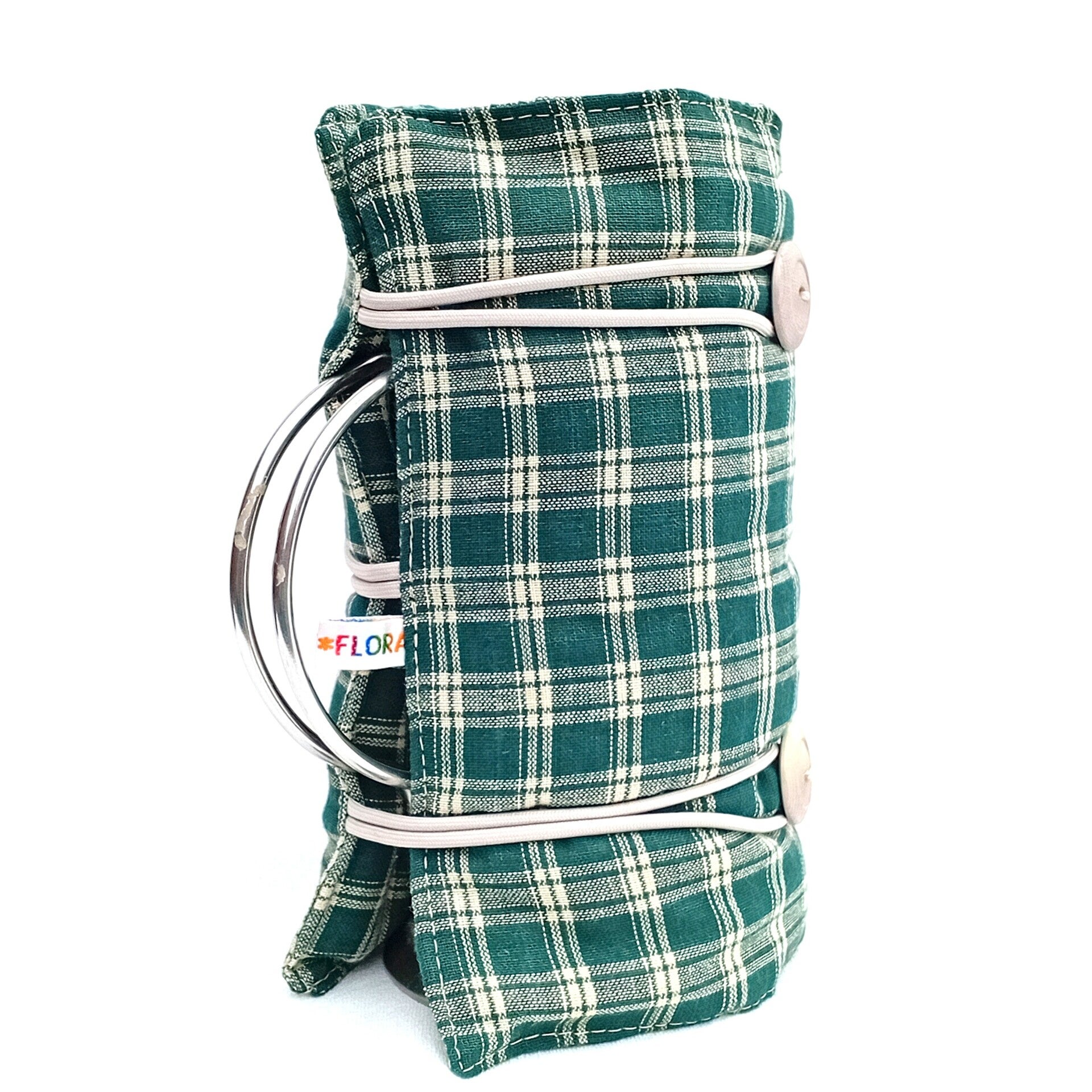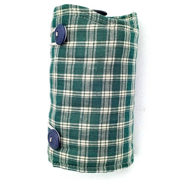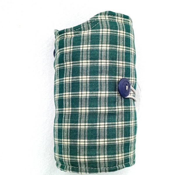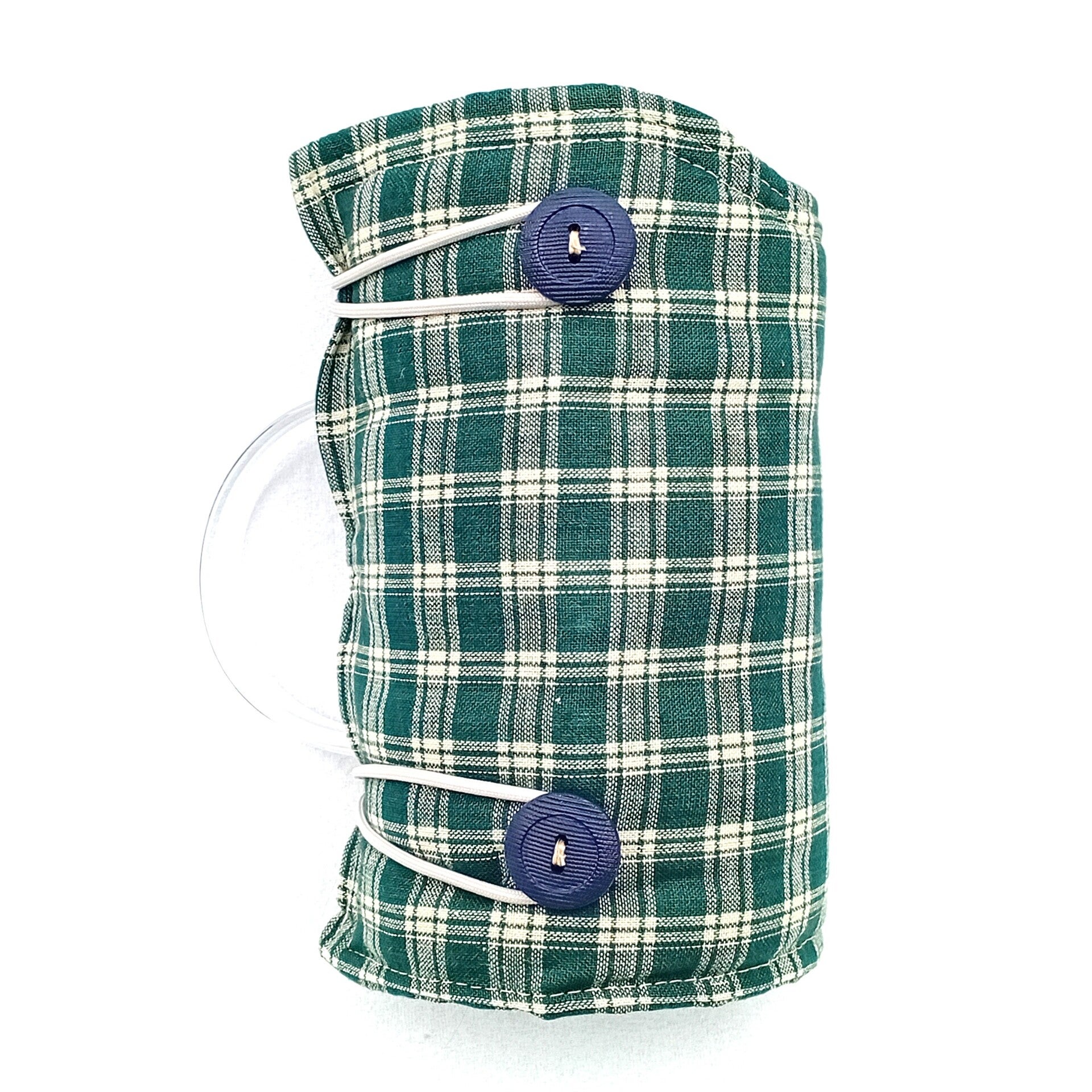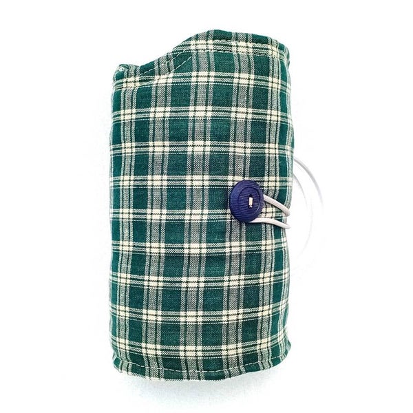- FOREST GREEN and SAND BEIGE 'tartan' pattern fabric SMALL Cafetiere cover (7GBT)