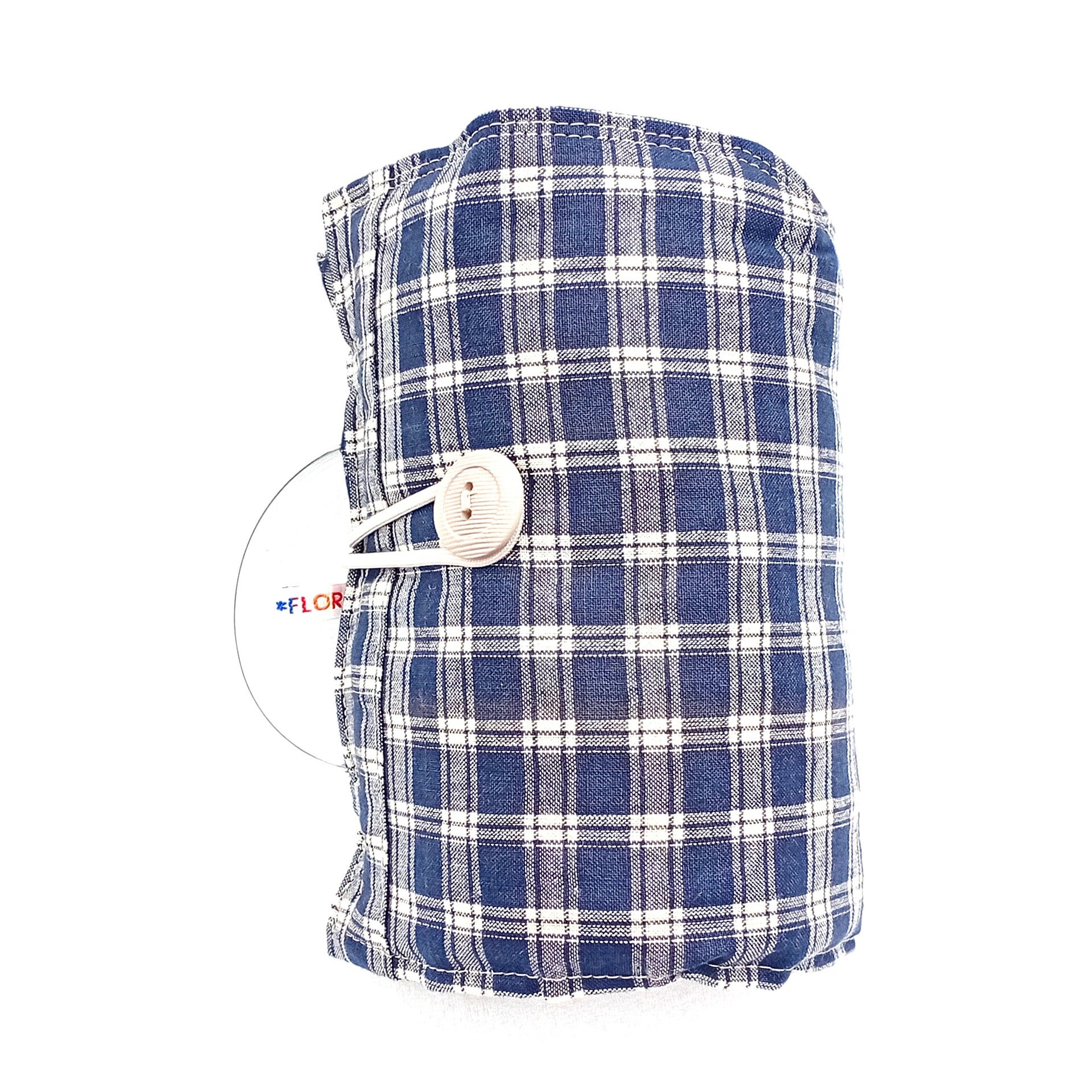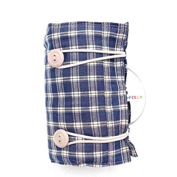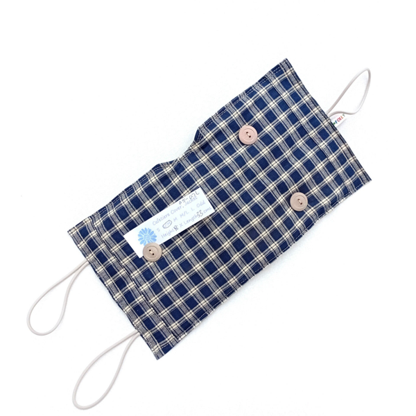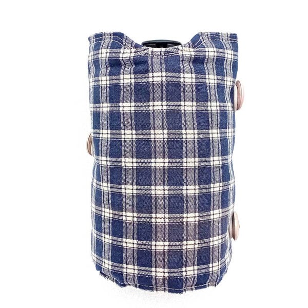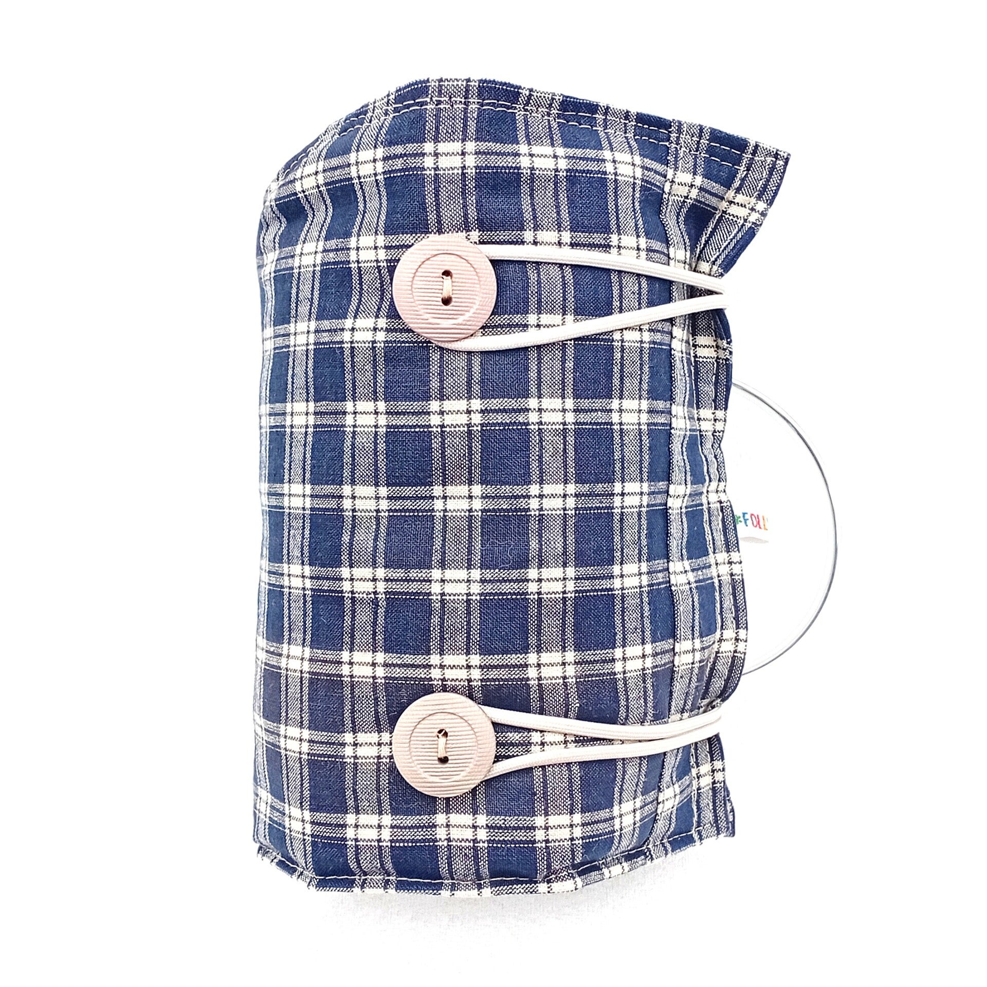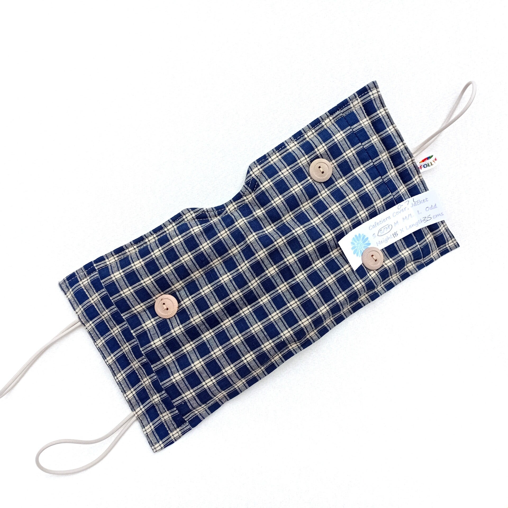 - DARK BLUE and SAND BEIGE 'tartan' pattern fabric SMALL MEDIUM Cafetiere cover (5GBT)