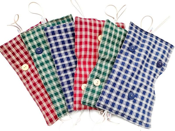 - DARK BLUE, SAND/BEIGE CHECKS 'rustic', muted, matte shades, cotton outer fabric and matching liner.