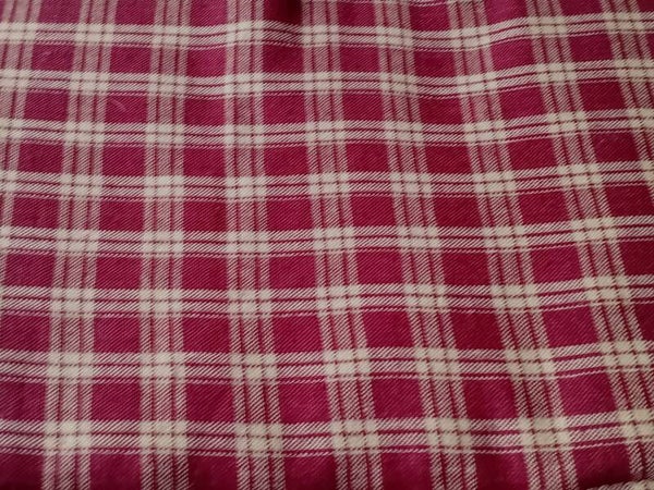 - WINE RED, SAND/BEIGE TARTAN CHECKS 'rustic', muted, matte shades, cotton outer fabric and matching liner.