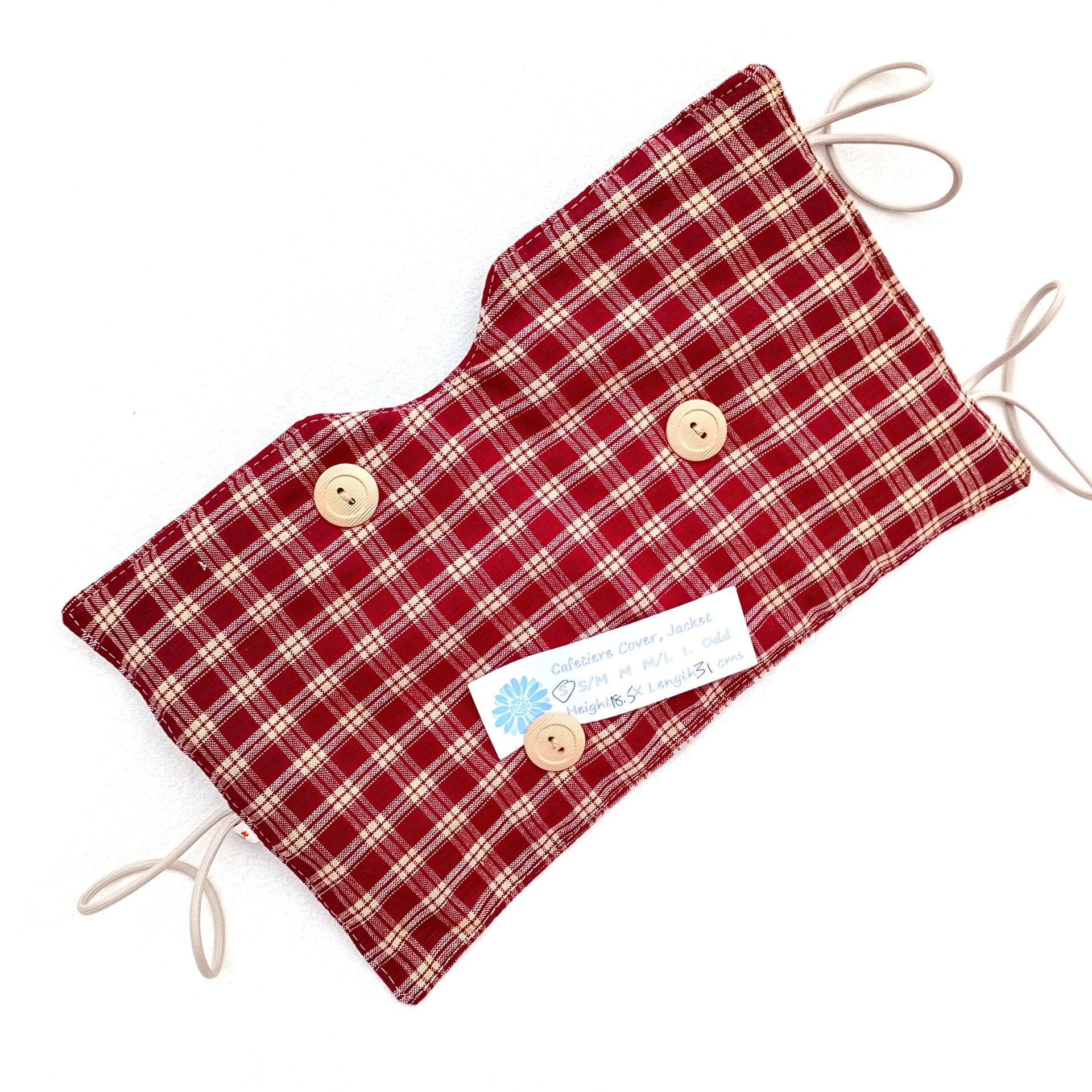 - WINE RED and SAND BEIGE 'tartan' pattern fabric SMALL MEDIUM Cafetiere cover (3/4RBT)