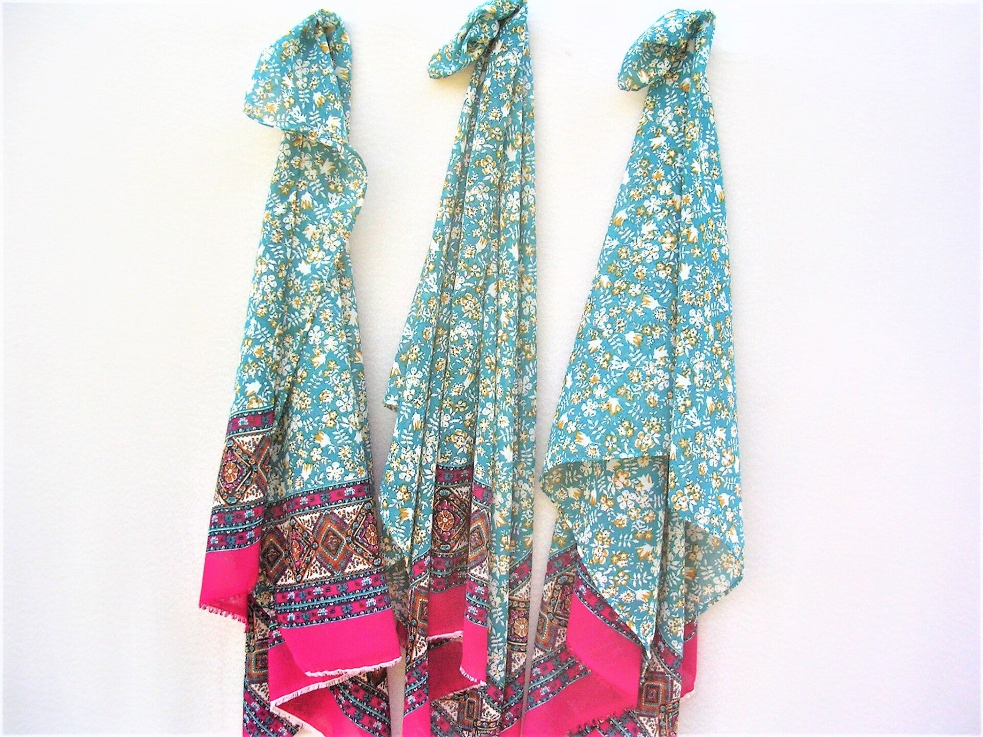 - Brightly coloured, lightweight, draping chiffon scarf or shawl in TURQUOISE and MAGENTA colours