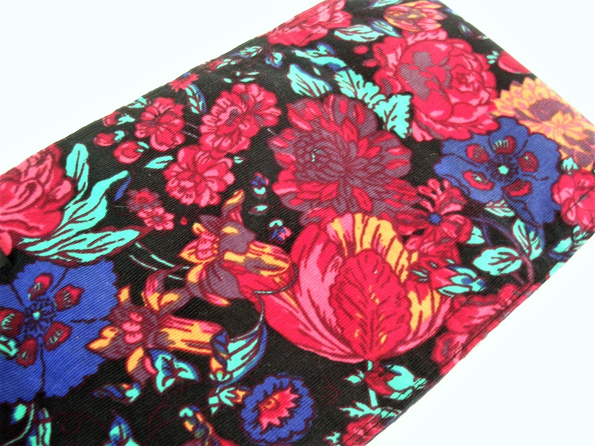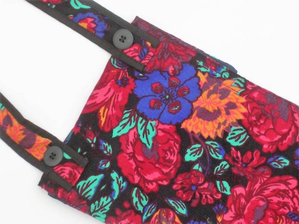 - With a colourful shoulder strap, the matching floral fabric one side, black the other.