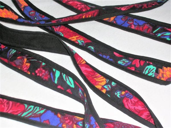 - With a colourful shoulder strap, the matching floral fabric one side, black the other.
