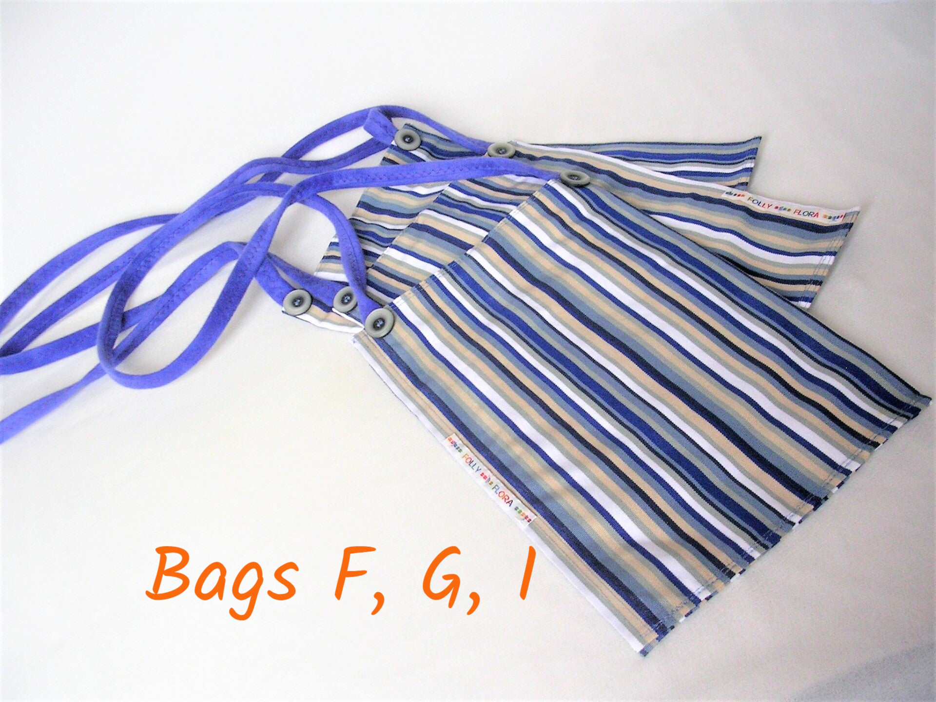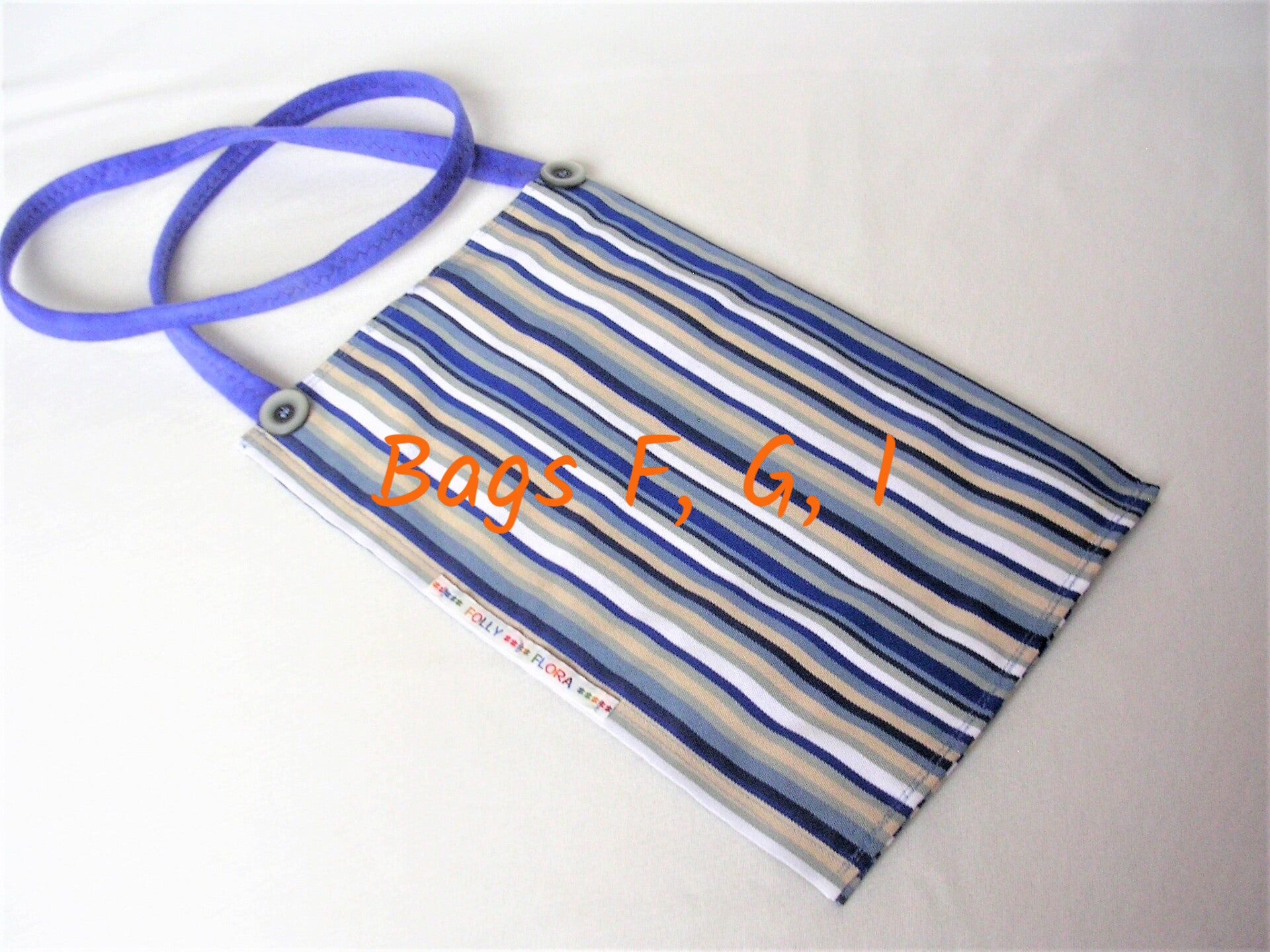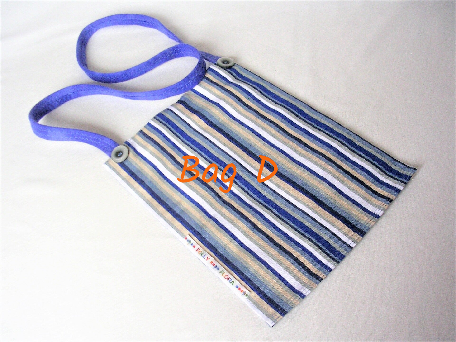 - BAG WHITE with DENIM BLUE, FAWN deck chair stripes