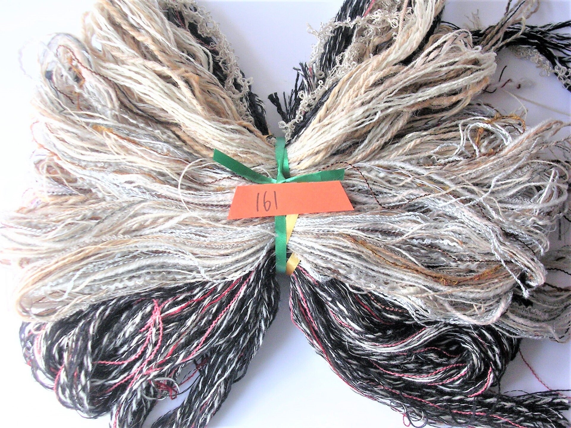 - Packaged in 5 tied bundles/skeins, of varying weights